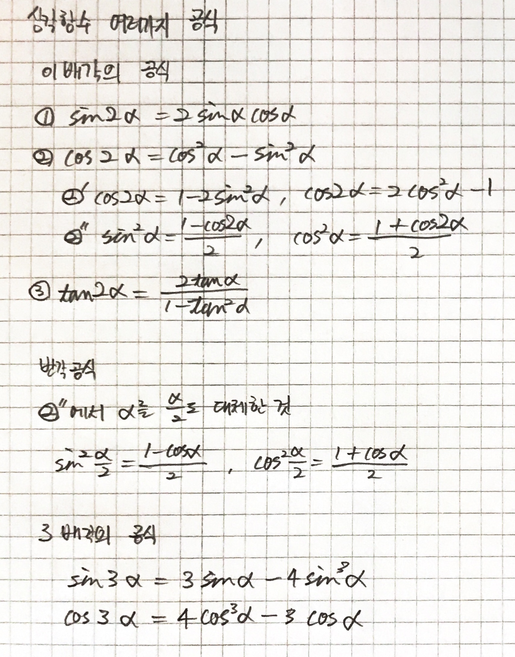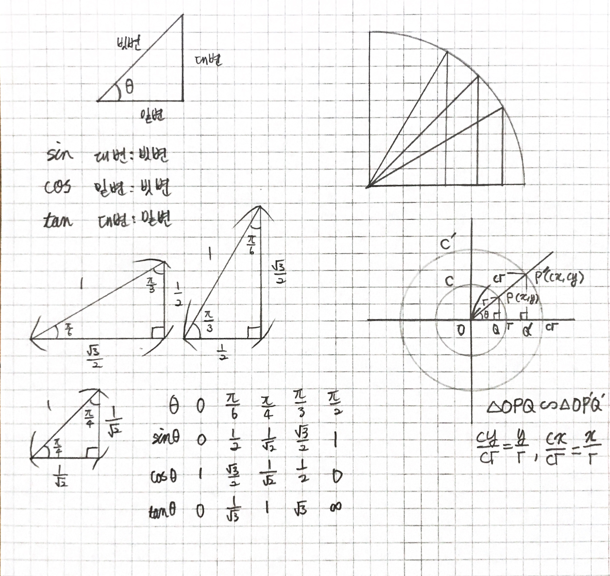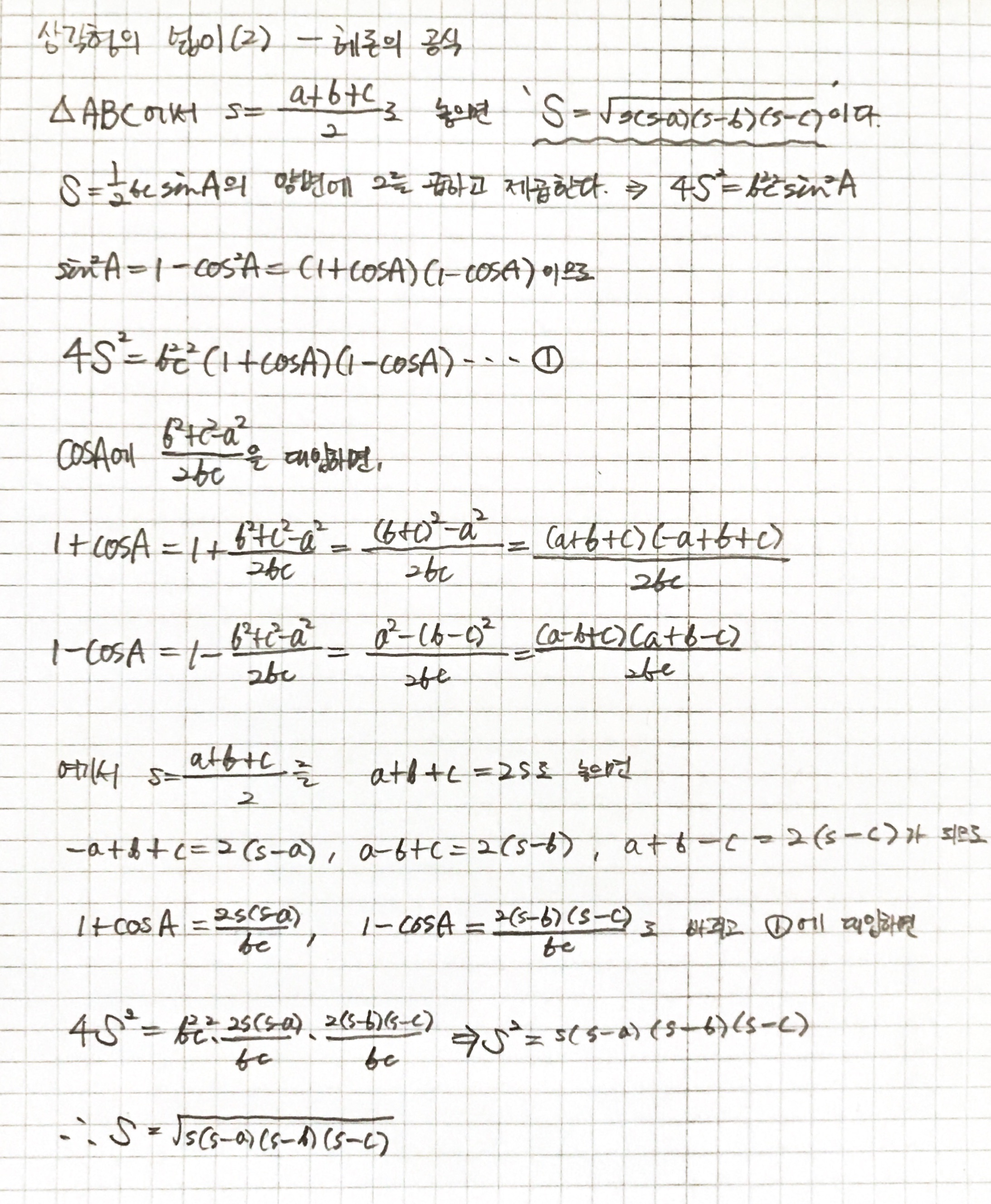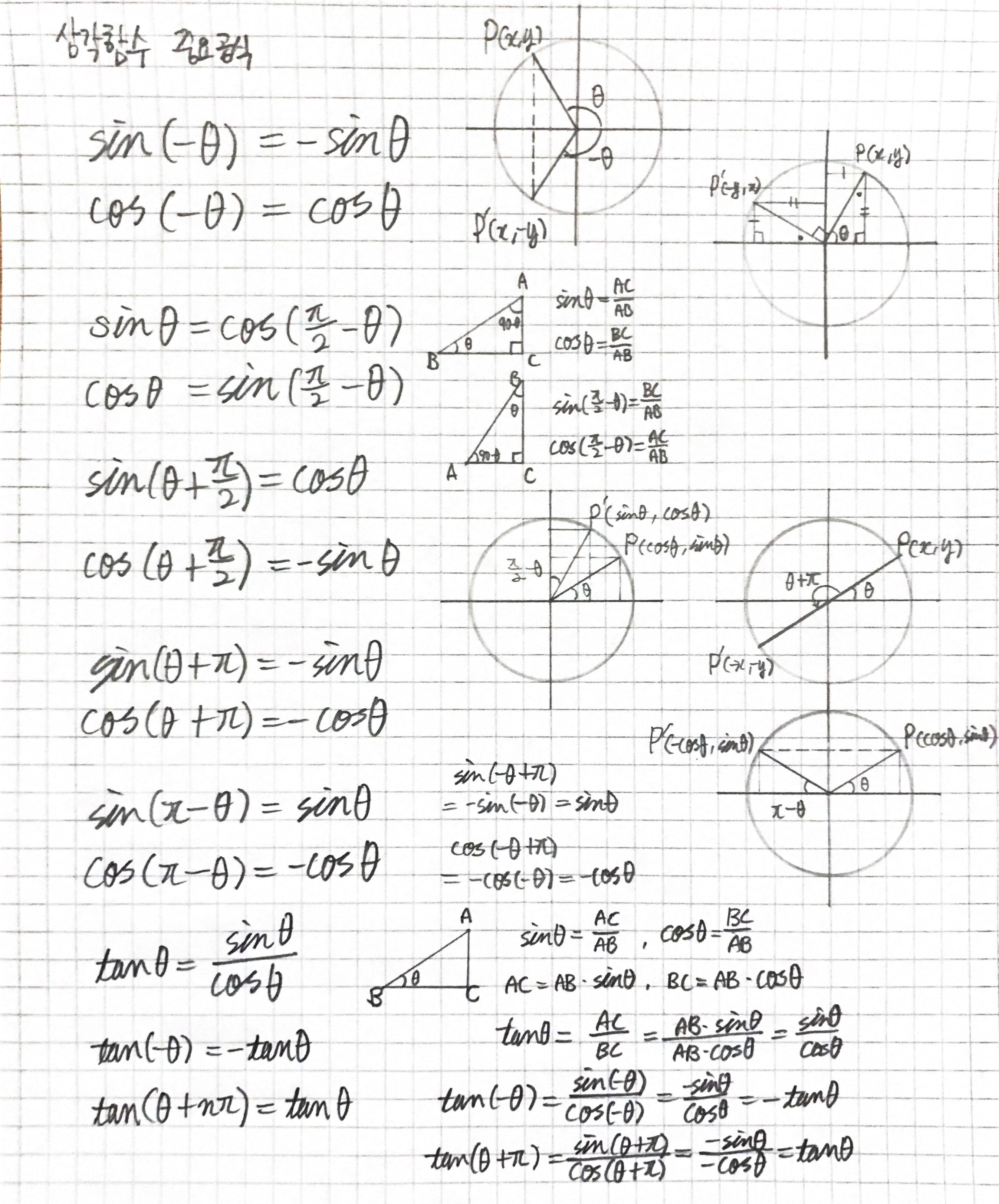 삼각함수와 삼각형(사인정리, 코사인정리, 삼각형의 넓이 등)