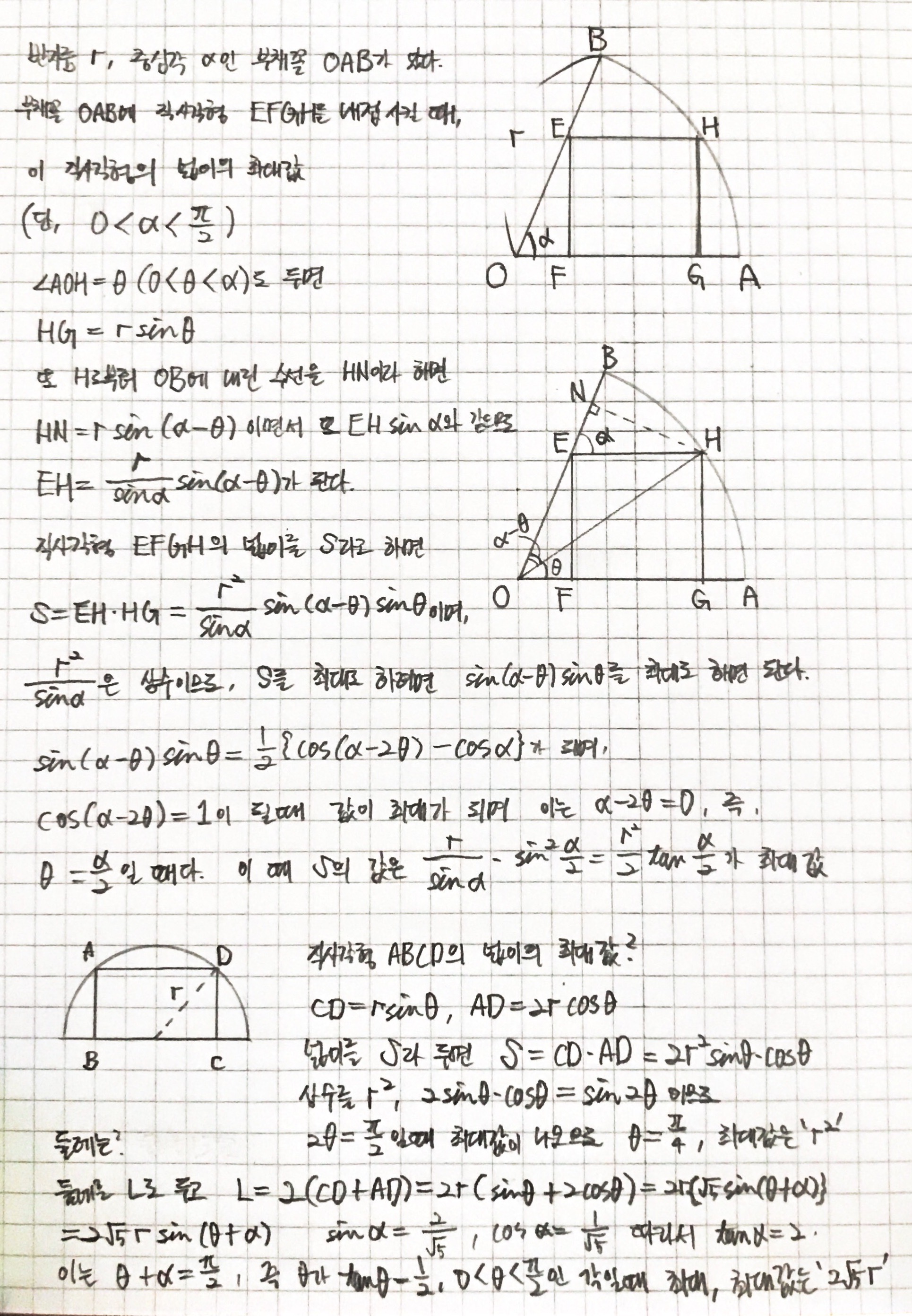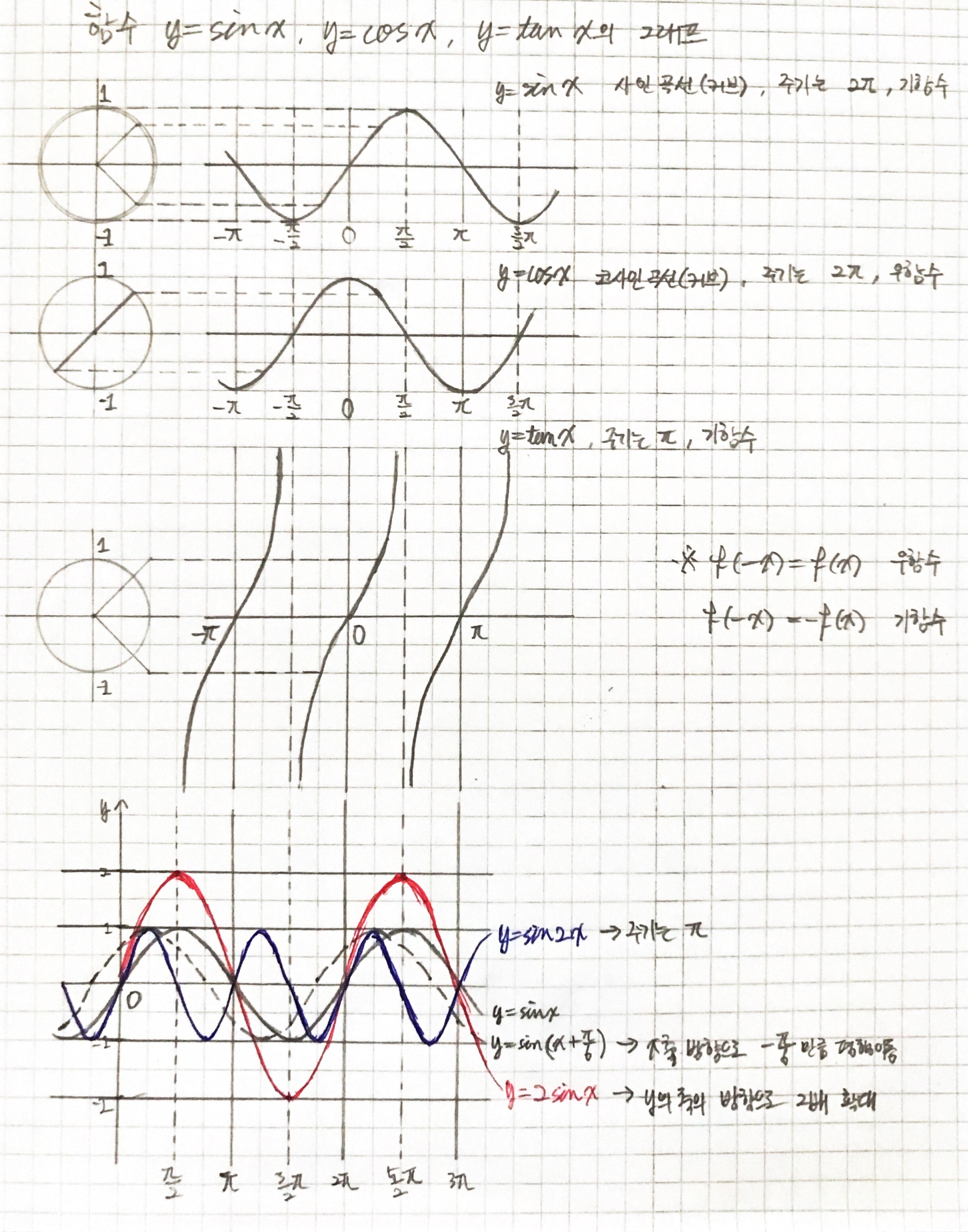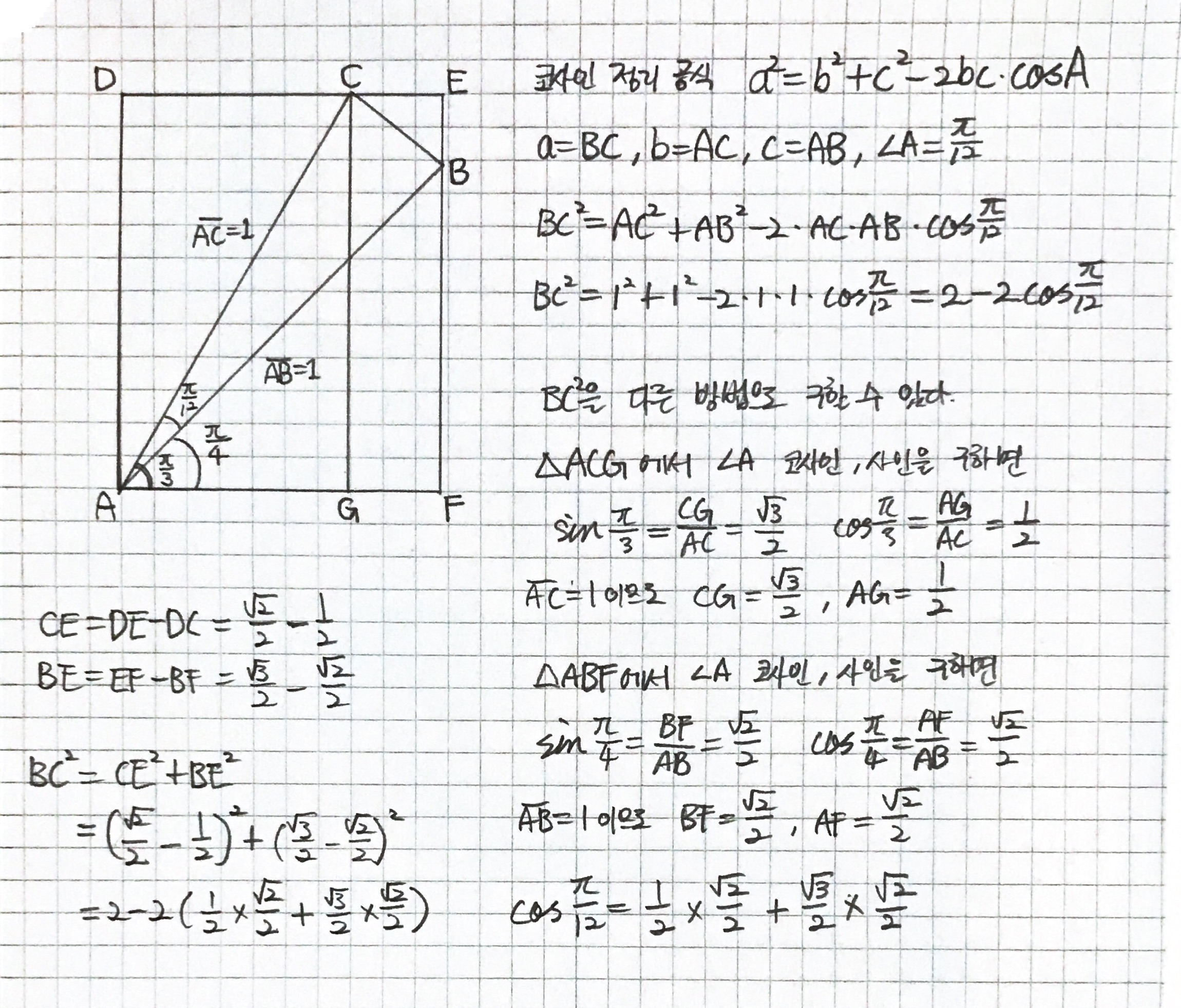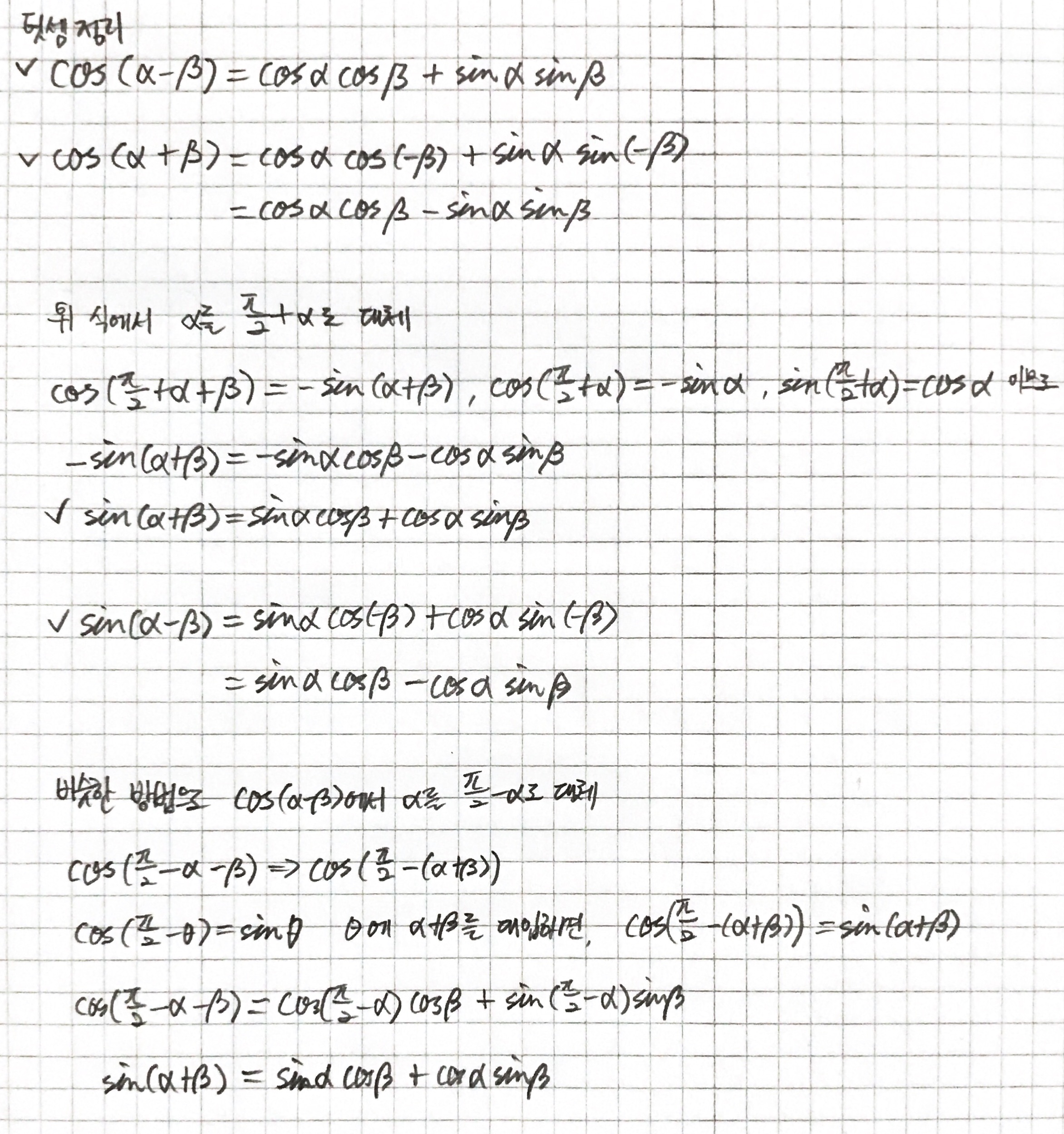 삼각함수와 삼각형(사인정리, 코사인정리, 삼각형의 넓이 등)