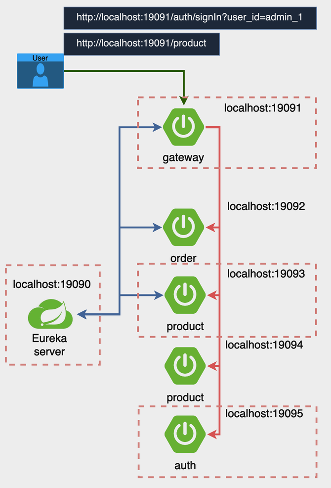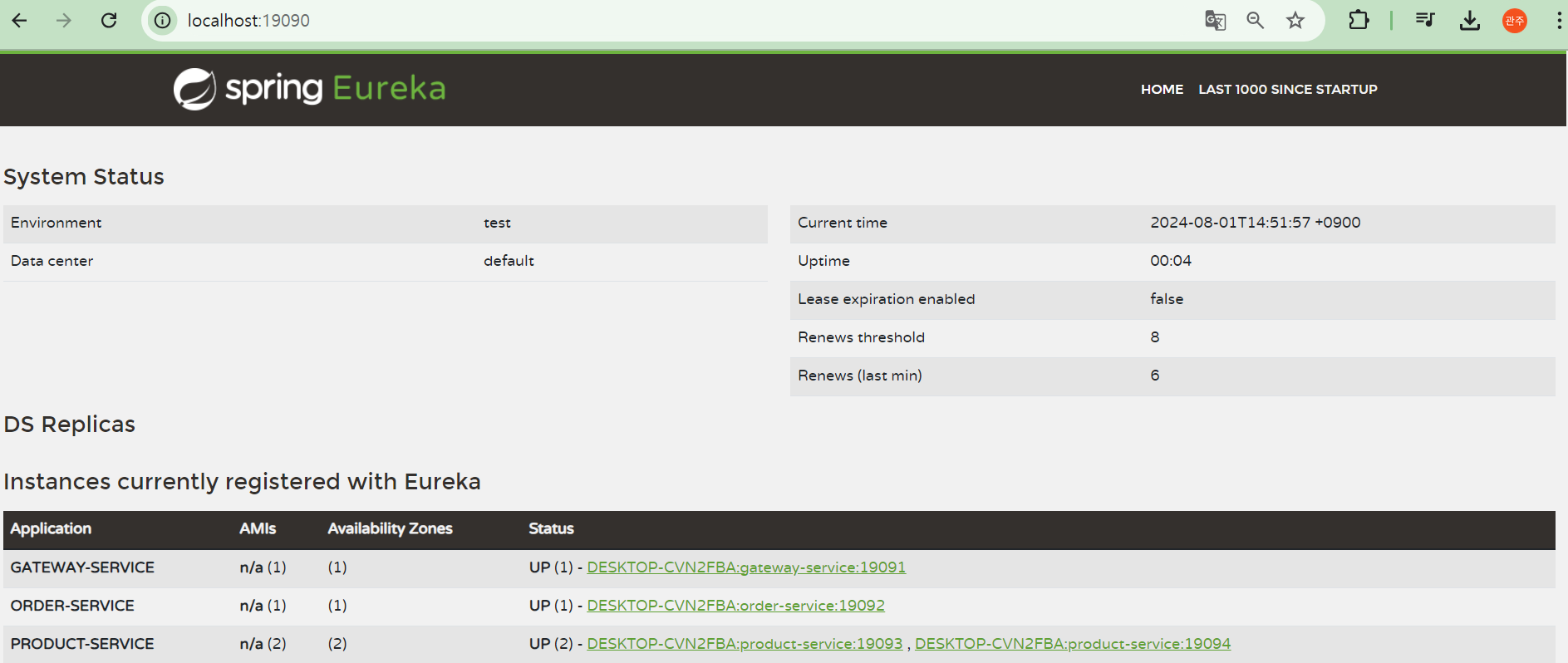 💡 클라우드 게이트웨이 + 유레카 + Order 인스턴스(1개) + Product 인스턴스(2개) 로 진행해봅니다.