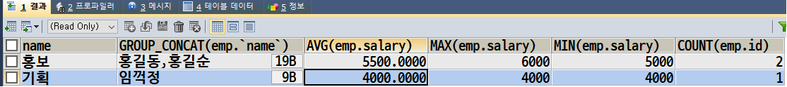 AVG(salary) 의 결과 값은 xxxx.0000의 데이터가 나온다.