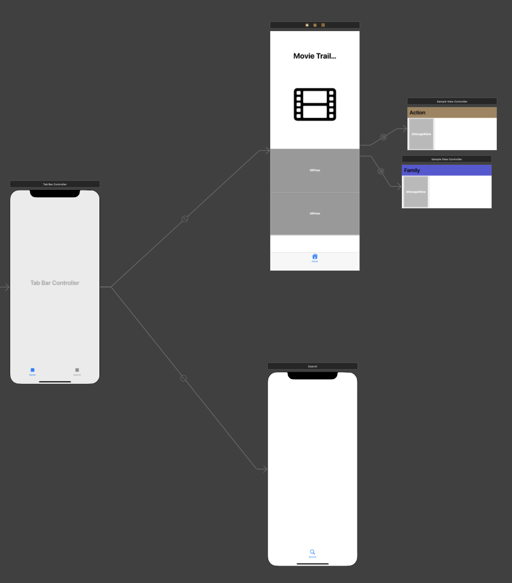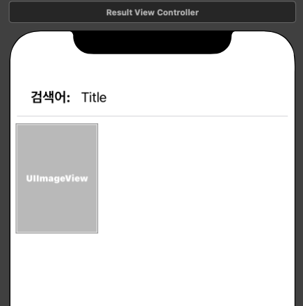 이런 식으로 보여줄 것이다. Title에는 검색어를 띄울 수 있게 할 것이고 아래에는 CollectionView를 이용하여 검색결과의 썸네일을 보여주도록 하였다.