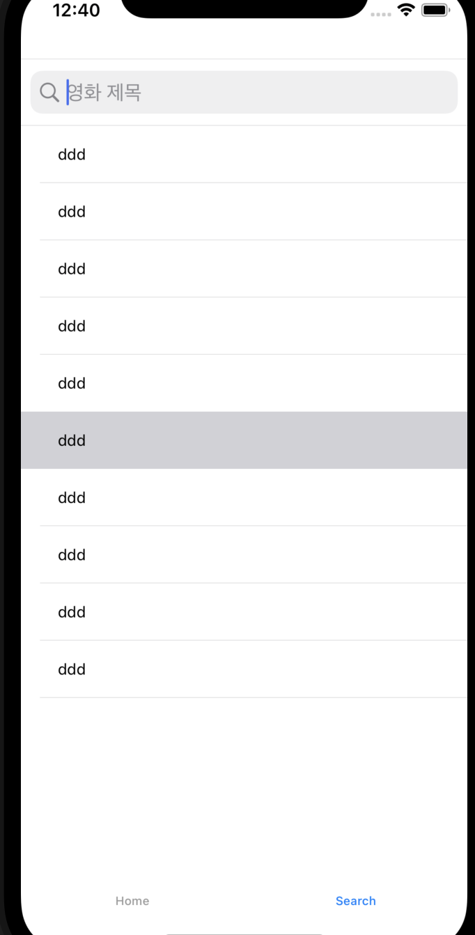 녹화하면서 살짝 끊기긴하지만 스크롤이 제대로 작동하는 것을 볼 수 있다. 다음으로는 SearchViewController를 세팅할 것이다.