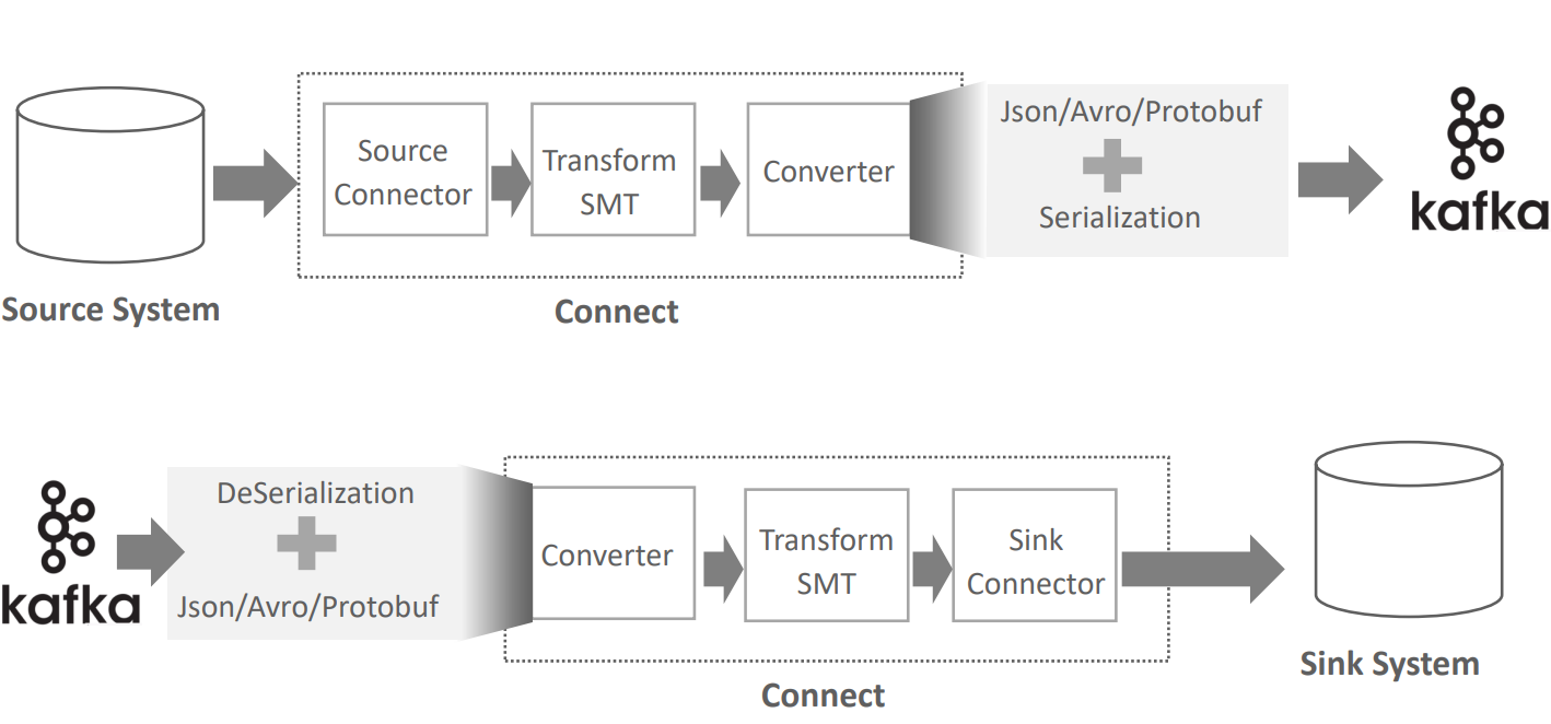 Kafka Connect는 다양한 포맷의 데이터를 처리하기 위해 JSON, Avro, Protobuf 등을 지원한다.