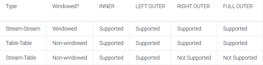 ksqlDB는 여러 형태의 OUTER JOIN을 지원한다.