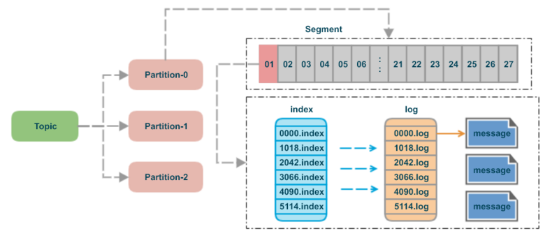 Kafka는 데이터를 파일 시스템에 저장할 때, 각 파티션을 여러 개의 segment로 나누어 관리한다.