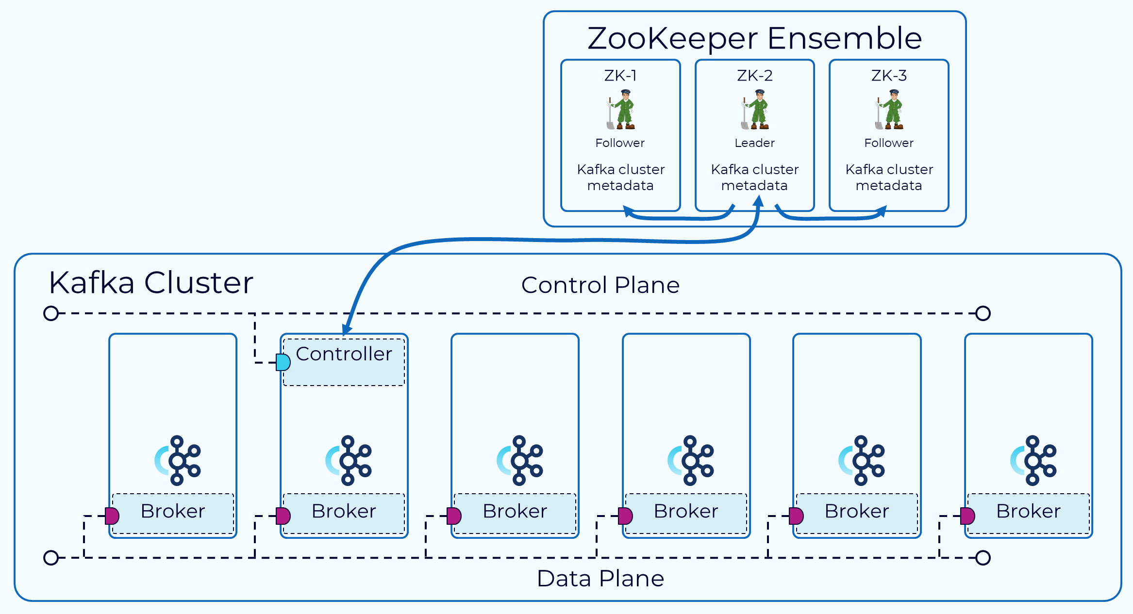 Zookeeper에 가장 먼저 접속한 Broker가 Controller 역할을 수행한다.