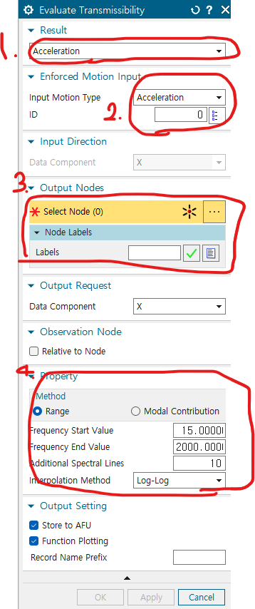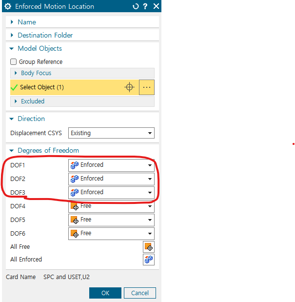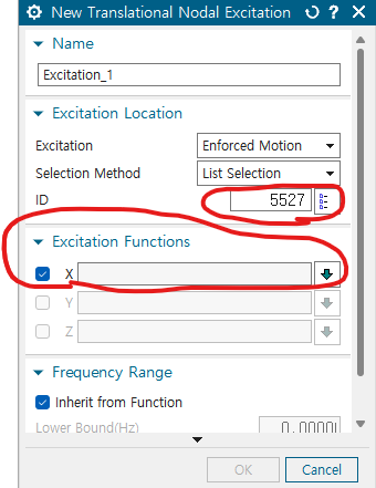 - 먼저 Excitaiton Location의 ID에는 이전에 Enforced motion location constraint를 지정한 노드의 번호가 들어감