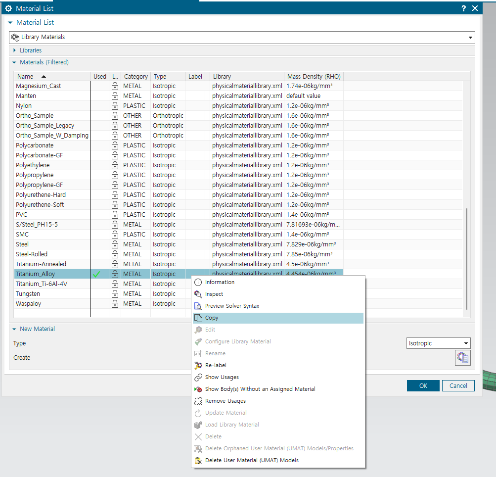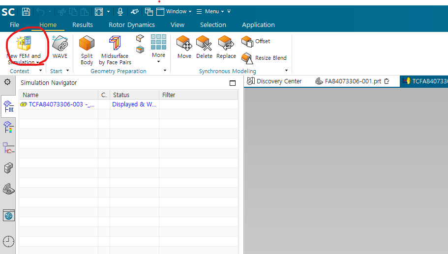 상단의 new fem and simulation 선택