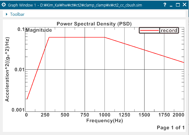 - 위에서 지정한 PSD profile (X축 Frequency, Y축 G^2/Hz)