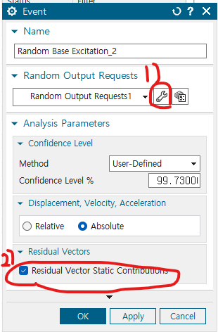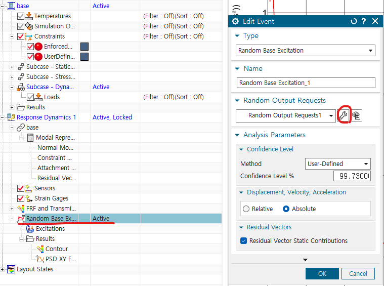 - 그리고 Random Base excitation 우클릭 -> Edit Attributes -> Random Output request 설정 들어가기