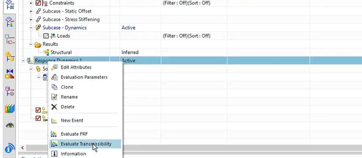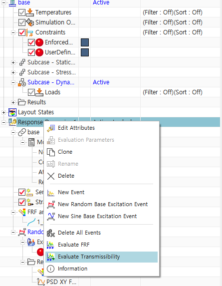 - Response Dynamics 우클릭 -> Evaluate Transmissibility
