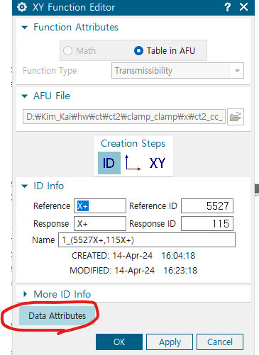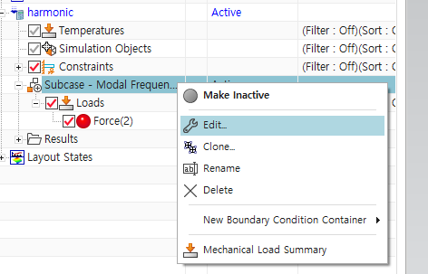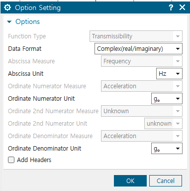 생성된 FRF and Transmissibility 우클릭 -> Edit