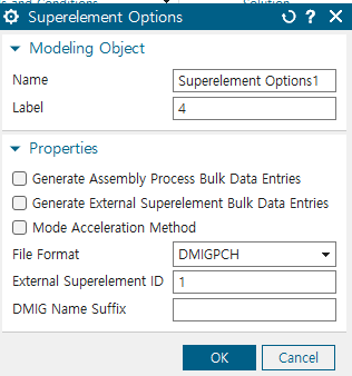 2 solution type에서 103 superelement로 reduced된 m,k와 psi,phi 뽑기