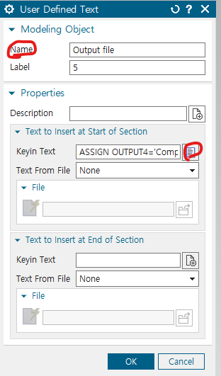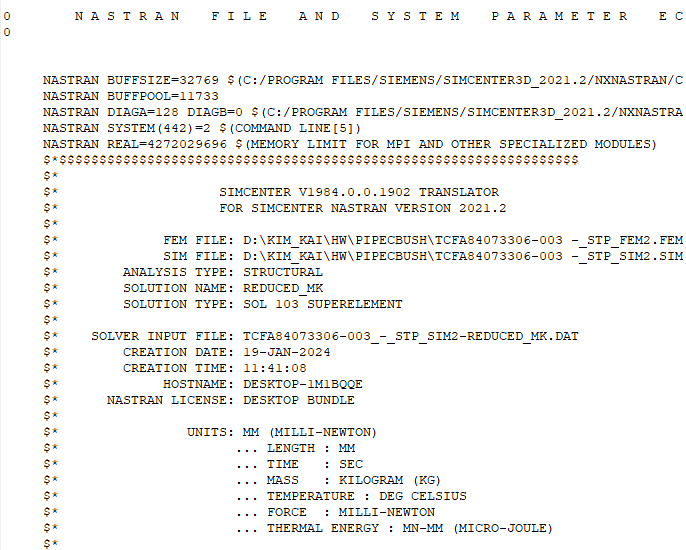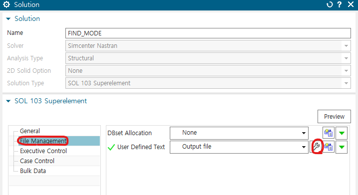 추가 설명 : DMAP 해석 결과를 저장하기 위한 파일을 생성하기 위한 과정이다. File Management card에서 User Defined Text를 이용한다. 위의 DMAP Code에서 PSI는 74번, PHI는 75번으로 설정하였으므로, 해당 코드를 UNIT으로 지정한다.