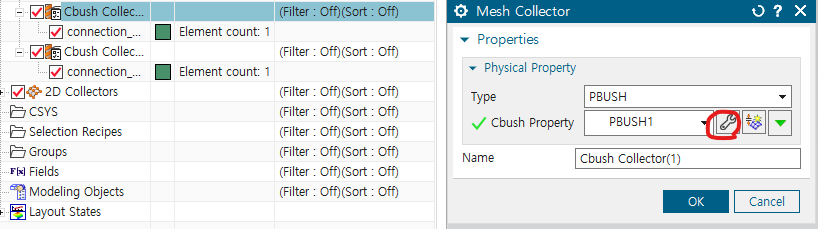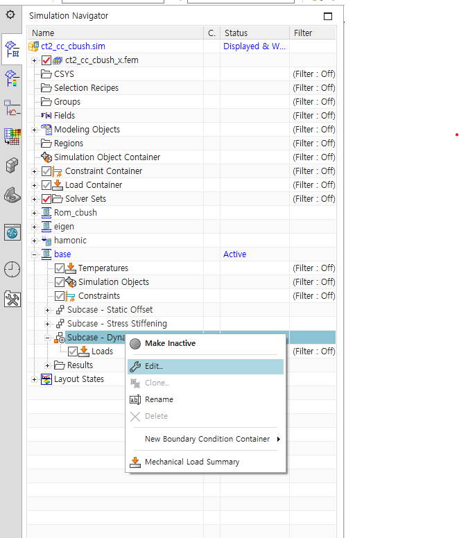 ->cbush로 연결한 반대편을 fixed constraint로 설정하기!!