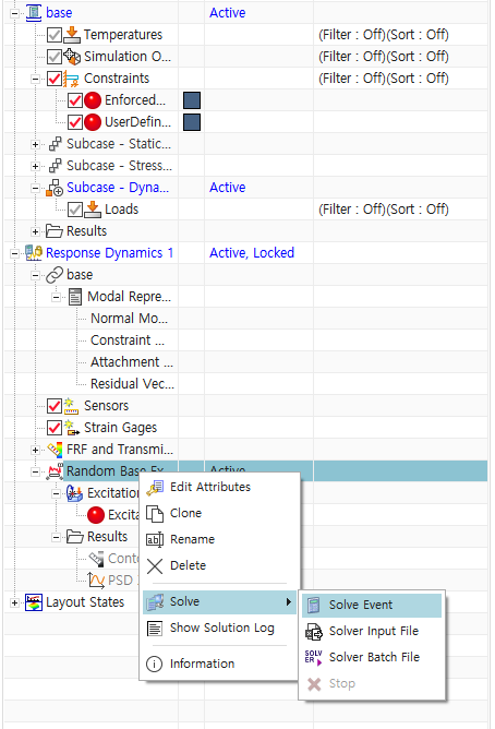 - Random Base excitation solve -> solve Event