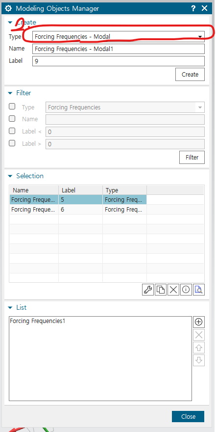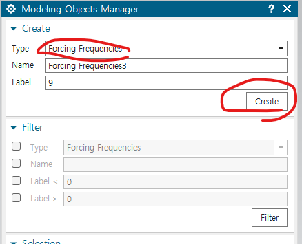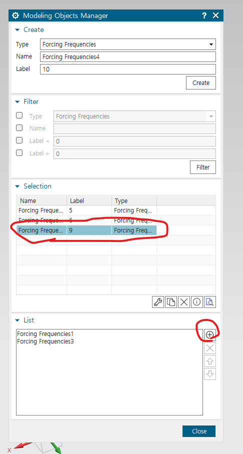 원하는 forcing frequency 고르고 + 버튼 누르기
