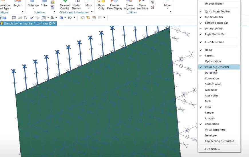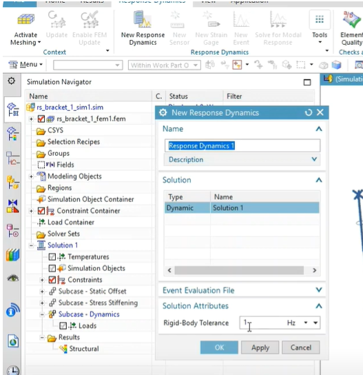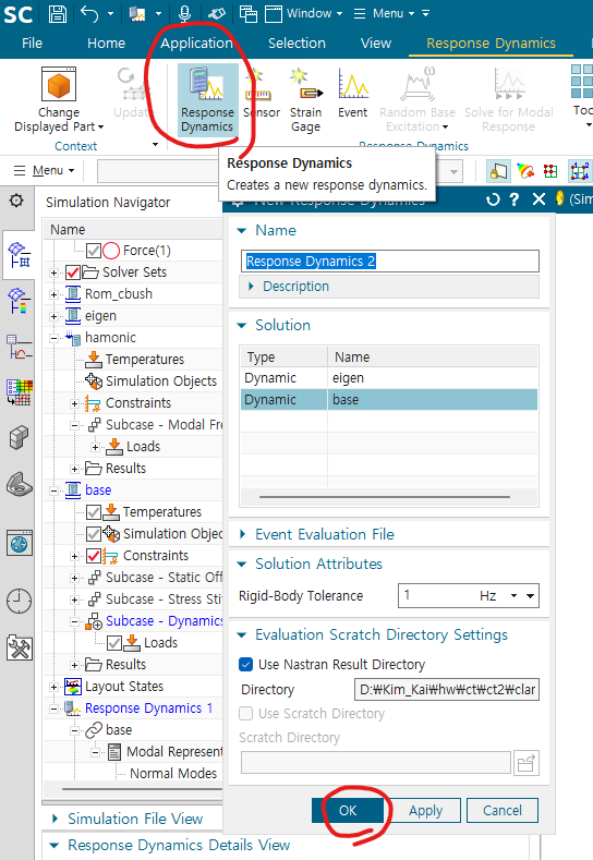 solve 후 tool바에서 우클릭 -> Response Dynamics 창 생성