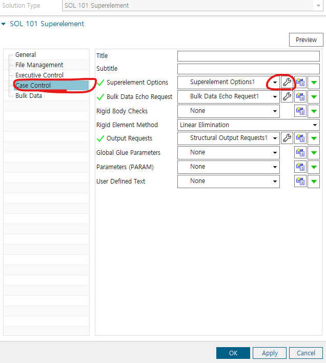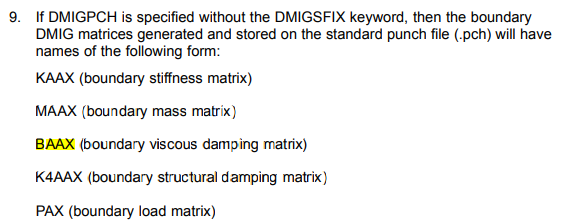 3 solution type에서 101 superelement로 cbush에 damping이 들어간 reduced된 m,c,k 뽑음 (101 superelement는 modal domain없음 주의)