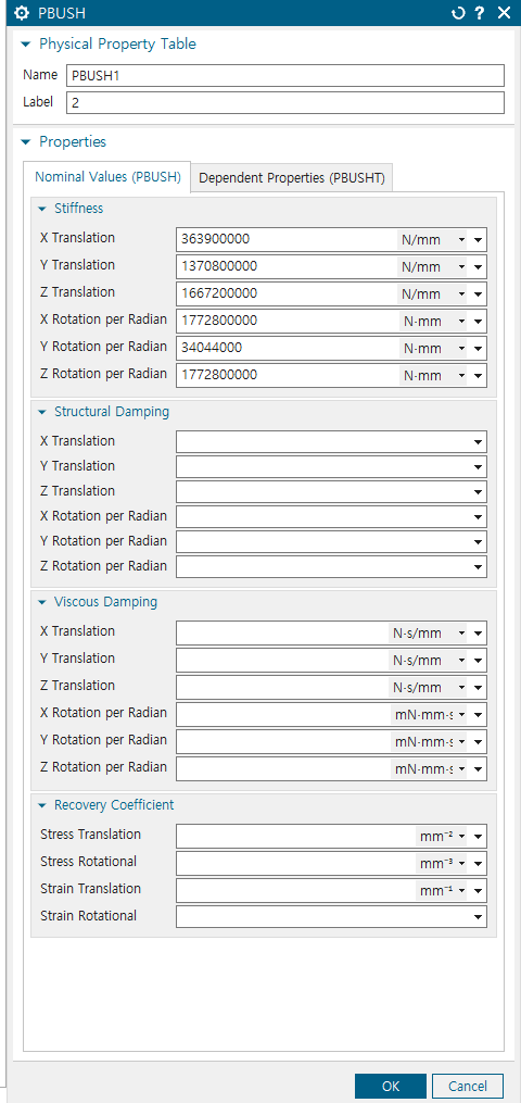 2 재료 물성치에만 structural damping 넣고, cbush에는 structural damping이 안들어간 reduced 된 m,c,k 뽑기