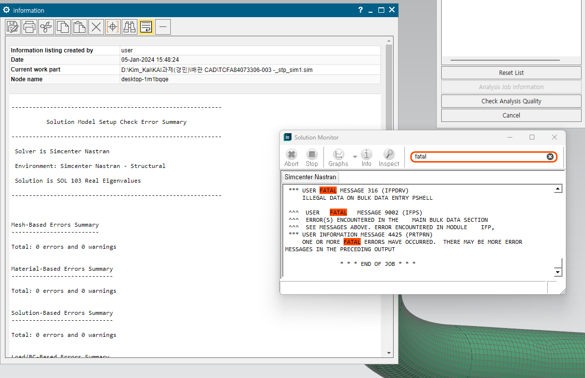 그러면 결과가 .pch 파일로 나옴 이를 matlab 코드로 mass와 stiffness matrix 얻기
