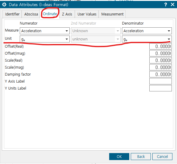 ordinate에서 분자 분모 단위 선택