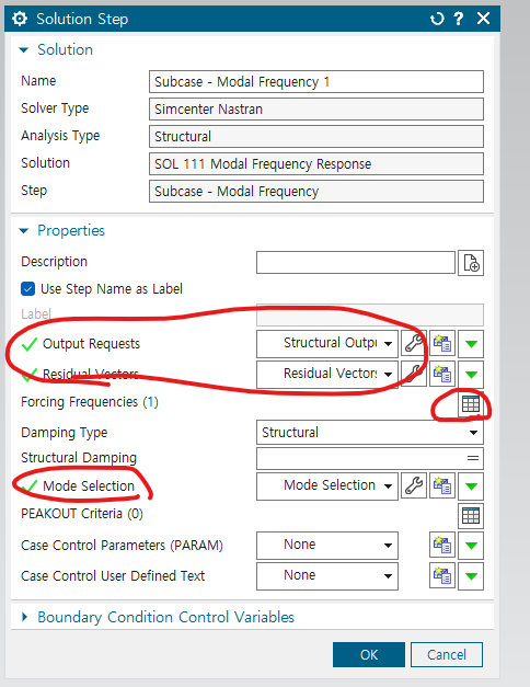 solution edit -> force frequency 정의