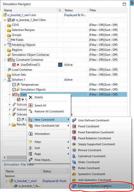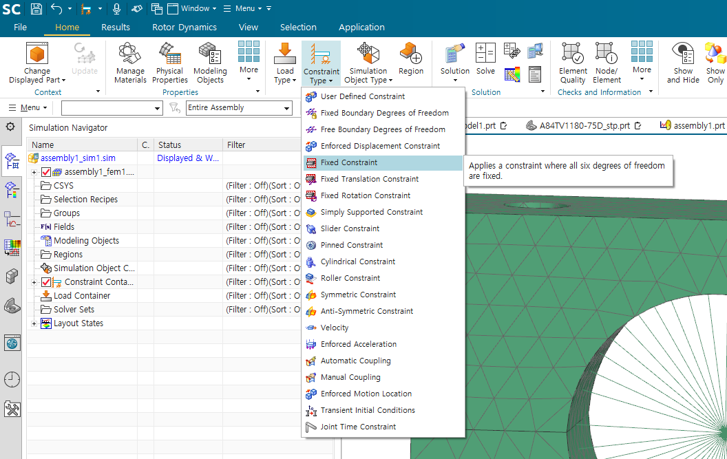 constraint와 load를 solution 생성 후, solution 내부에서 만들어야 함
