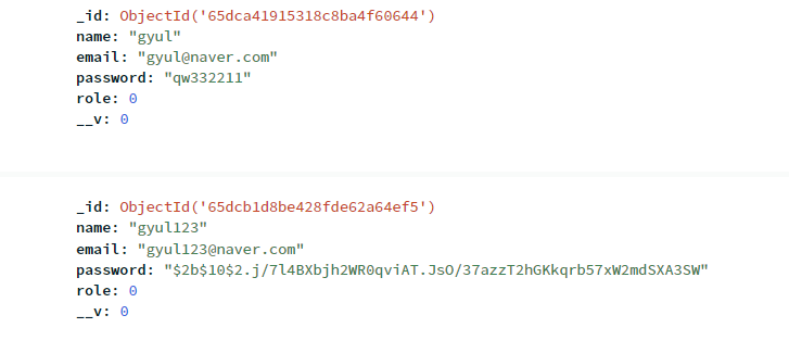 (3) 암호화 설정 후 다시 postman 실행 > MONGO DB 확인