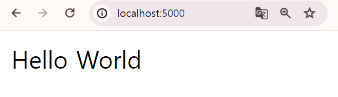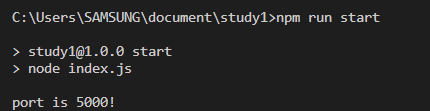 이제 npm run start를 하면 app.listen(port, ()=> console.log(`port is ${port}!`)) 부분이 실행되며, chrome에서 localhost:5000을 보면 app.get('/', (req, res)=> res.send("Hello World"))이 실행되는 것을 볼 수 있다,