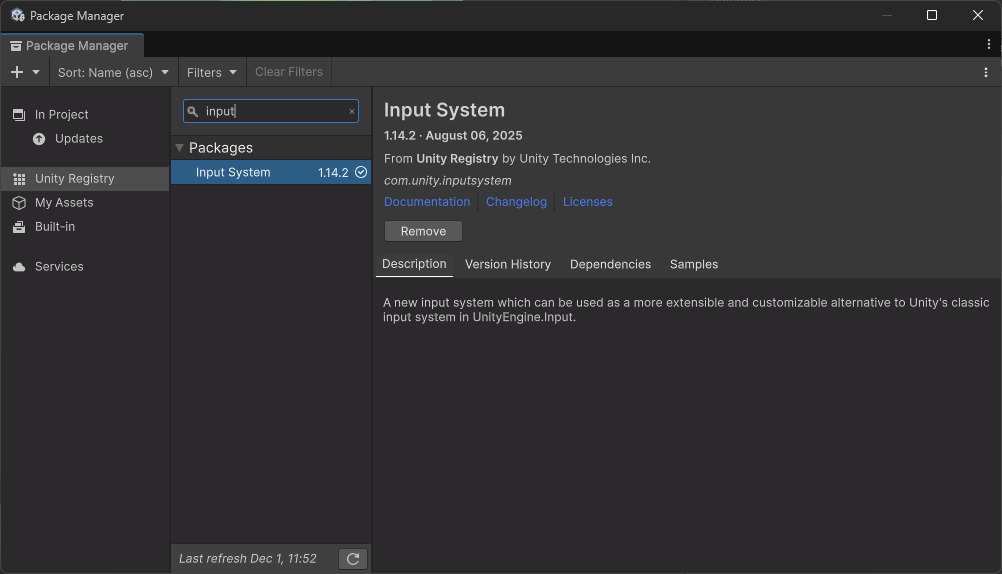 Window>Package Management>Package Manager에서 New Input System이 설치되어있는지 확인한다.