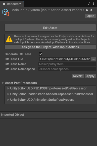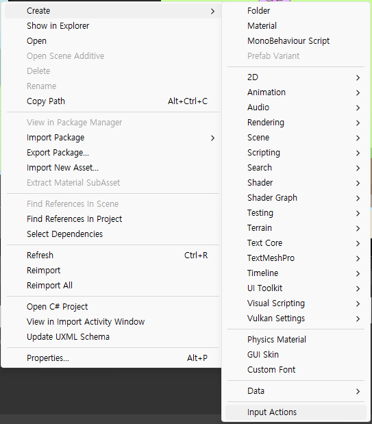 Action Maps, Actions를 필요에 맞게 설정한다.