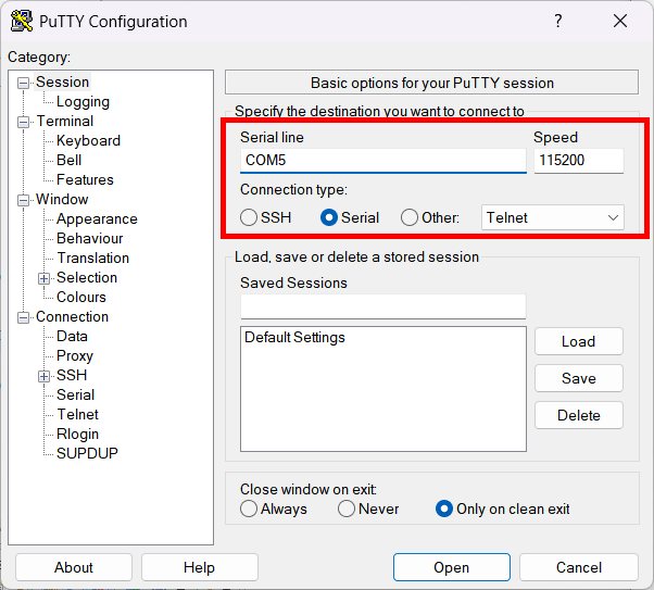 마침 putty라는 프로그램이 있고, Serial 통신을 지원하므로 활용해보자.