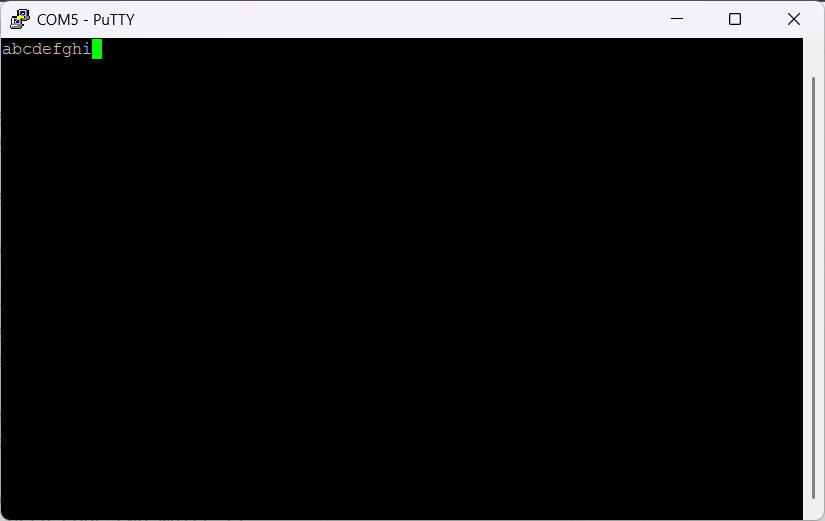 abcdefghi를 적었고, 그대로 돌려주어 시리얼 모니터에 들어오는 것을 볼 수 있다.
