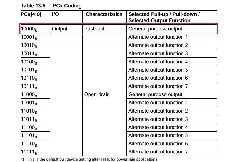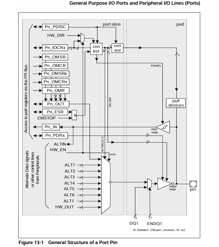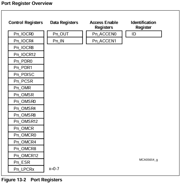 Pn_IOCRx Pn_OMSR Pn_OMR Pn_OUT 등의 레지스터가 있고, 필요에 따라 값을 설정해주면 되는 것으로 보인다.