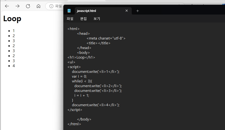 -> while 문 사용해서 i가 3보다 작으면 2,3 출력