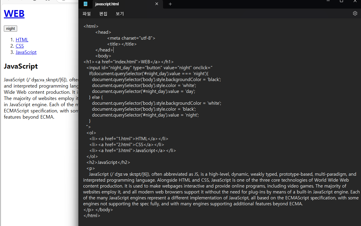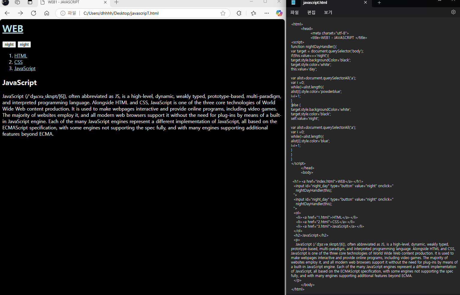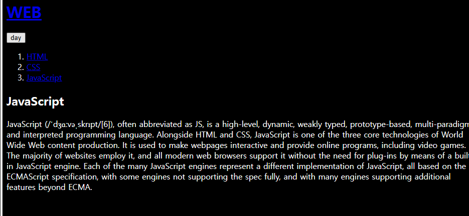 -> night 버튼을 눌렀을 때 : 버튼은 day