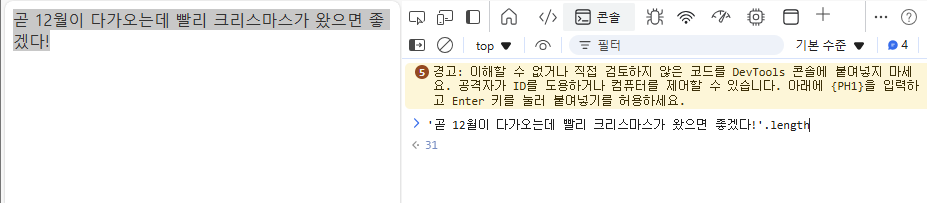 -> 문자의 개수가 몇 개인지 알려주는 콘솔 + alert