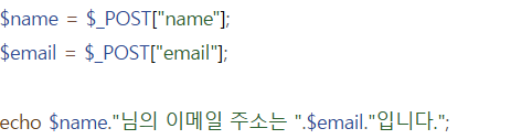echo "이메일 : ".$email."<br>";