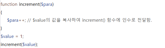 -> 인수를 함수에 전달하면, 새롭게 생성된 매개변수에 전달받은 값이 복사되어 저장