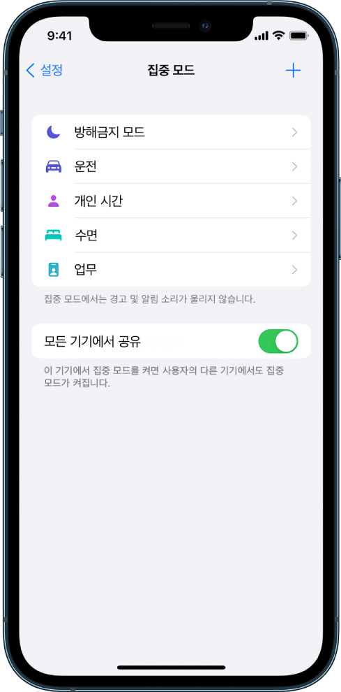 - 애플: iPhone 사용 설명서, iPhone의 집중 모드 설정하기
