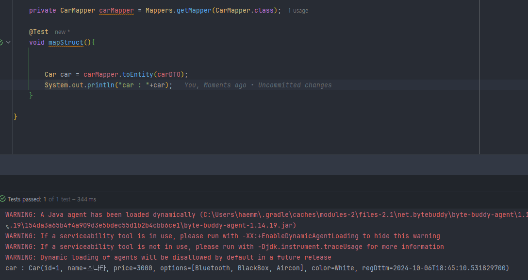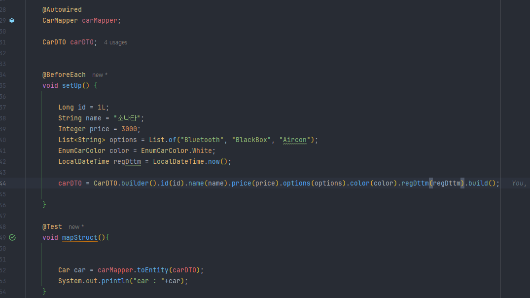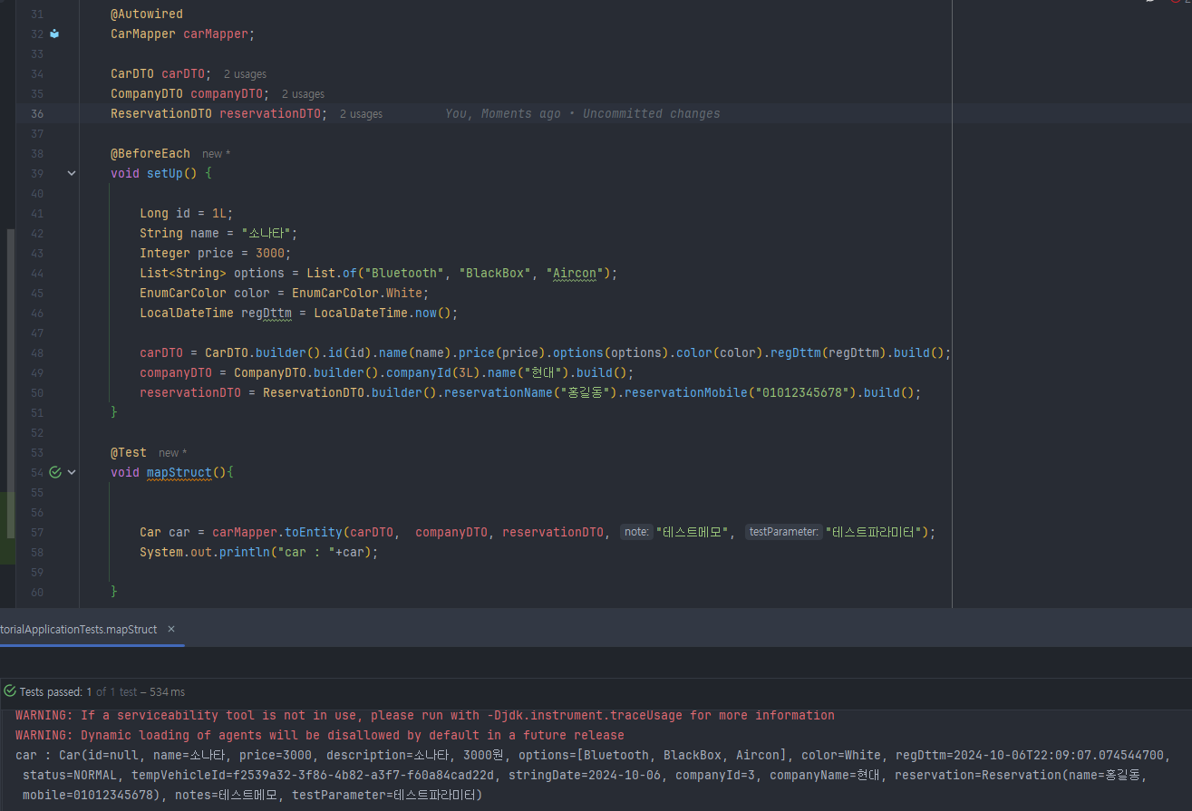 파라미터명이 다른 파라미터 객체 내에 변수랑 일치해도 오류가 발생하지 않는다. CarDTO 내에 name이 있지만 파라미터 name사용가능@Mapping(target = "notes", source="name")