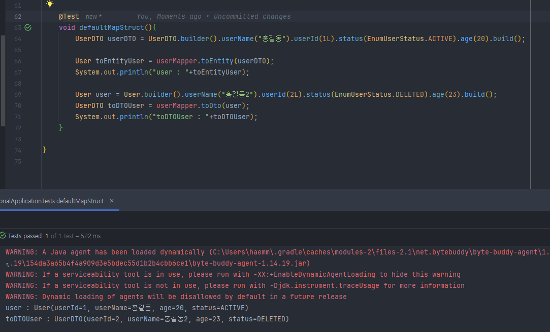 주로 DTO <-> Entity간의 변환작업시 사용되며 컴파일 시점에 매핑 코드를 자동으로 생성해준다.