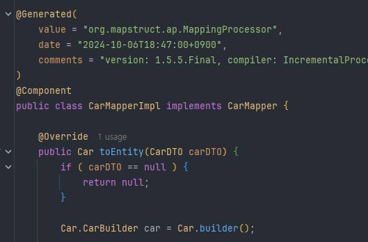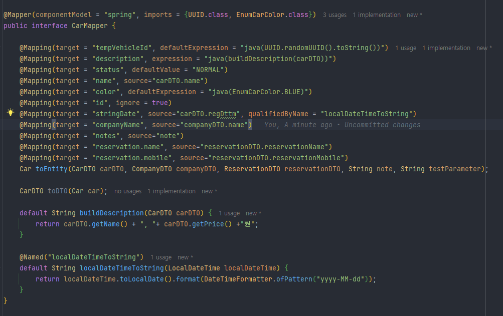 default 메서드로 만든 후 직접 구현하는 방법도 있다.MapStruct 1.5.5 Final 문서 : https://mapstruct.org/documentation/1.5/reference/html/