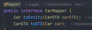 private CarMapper carMapper = Mappers.getMapper(CarMapper.class);
