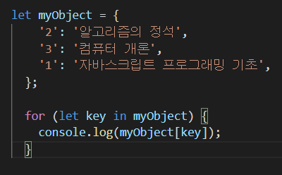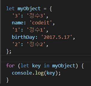 for문안에 아무 프로퍼티 값을 선언해서 콘솔로그로 적용하면 밑에 있는 값이 나온다.