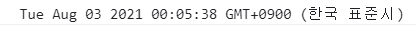 결과값 : 요일 월 일 년도 시간 시간대순으로 출력이 되는걸 확인할수있다.
