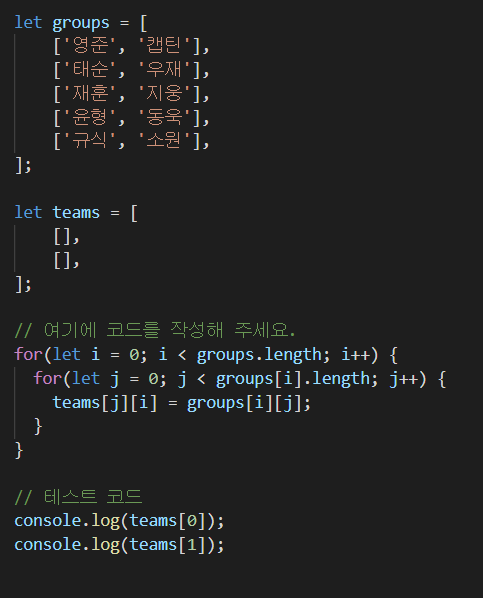 마지막으로 groups의 각 index를 뒤집어서 teams에 할당해주면 좀 더 효율적으로 문제를 해결할 수 있다.
