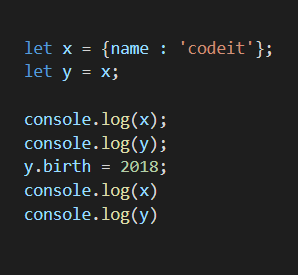 x도 똑같이 birth : 2018가 추가되었다. 값이 복사된가 아니라 주소를 복사한거다.