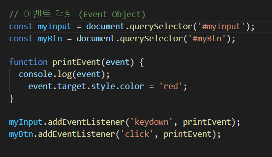 결과값 : 버튼을 클릭 및 키보드로 내용을 입력했을때, 이벤트가 작동하는걸 볼 수 있습니다